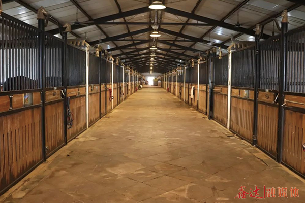 鑫达伯汗马业活动面积超200亩,园内绿荫环抱,拥有标准马厩128间 红桃视频在线,放牧场地45个,内设马匹游泳池,洗浴打理区,马医院,自动遛马机,健身房,接待室,会所,办公区域等基础设施,建有100×15米专业弹性纤维纱马术室内场,60×90米室外赛场,马房采用中欧结合的技术标准和风格设计,设置温控系统,标准厩位5×5米,5×6米,全部铺设标准垫料,预防马匹肢蹄病。